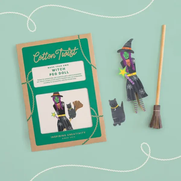 Une activité créative autour d’une poupée sorcière à pince, pensée pour les enfants à partir de 3 ans. Ce kit ludique stimule l’imagination tout en développant la motricité fine. Les enfants peuvent assembler et jouer avec la poupée, accompagnée de ses accessoires : jupe, haut, balai, baguette magique, chat et chapeau. Une fois créée, la poupée devient un véritable support de jeu inventif.