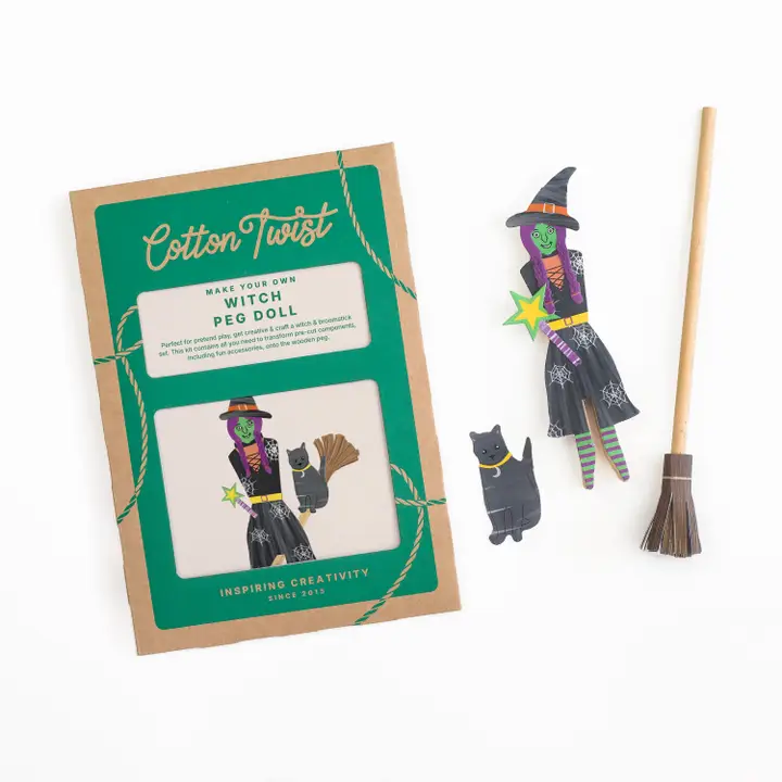 Une activité créative autour d’une poupée sorcière à pince, pensée pour les enfants à partir de 3 ans. Ce kit ludique stimule l’imagination tout en développant la motricité fine. Les enfants peuvent assembler et jouer avec la poupée, accompagnée de ses accessoires : jupe, haut, balai, baguette magique, chat et chapeau. Une fois créée, la poupée devient un véritable support de jeu inventif.