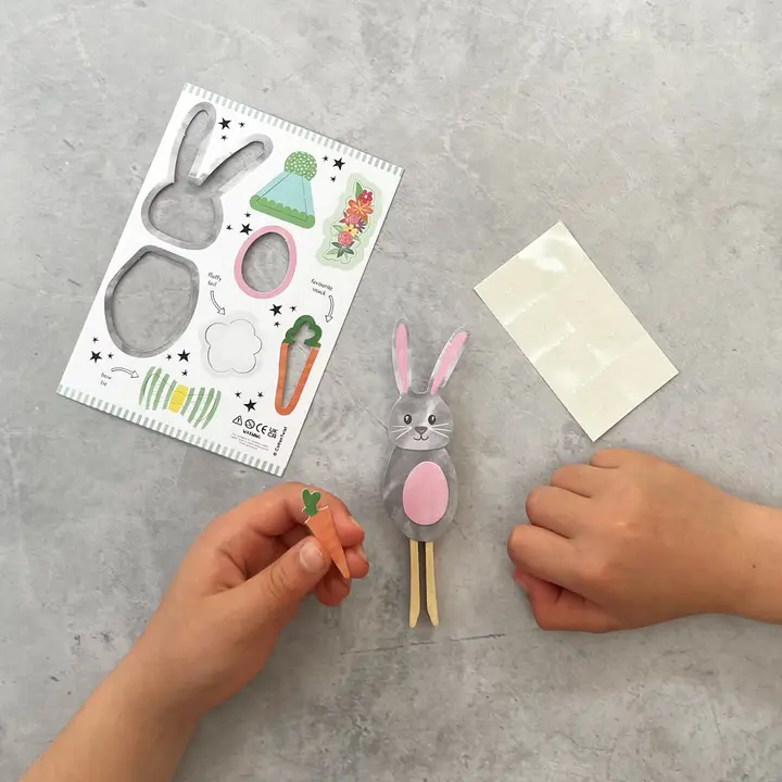 Les enfants aiment créer et bricoler, et cette poupée lapin à pince à linge est idéale pour stimuler leur imagination. Le kit permet d’assembler une poupée amusante composée d’un corps, d’une tête, d’un ventre, d’un nœud papillon, d’une couronne de fleurs, d’un chapeau de fête et d’une carotte. Une fois assemblée, la poupée devient un support de jeu créatif.