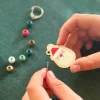 Les matériaux inclus sont un pendentif Père Noël en bois, des perles sphériques, un anneau de porte-clés et un élastique avec embouts métalliques. Chaque kit est présenté dans une pochette kraft recyclable de 16,5 x 11,5 cm, accompagnée d’une carte d’instructions imprimée au format A6.