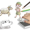 Ce coffret de tampons permet aux enfants de créer des personnages et d’imaginer des histoires autour de l’univers de la ferme. En combinant les motifs, ils peuvent composer des scènes variées et donner vie à leurs propres dessins.