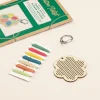 Les matériaux inclus sont une fleur en bois, un paquet de 7 fils de coton, une aiguille à broder en métal et un anneau porte-clés en métal. Chaque kit est présenté dans une enveloppe kraft recyclable de 16,5 x 11,5 cm, accompagnée d’une carte d’instructions imprimée au format A6.