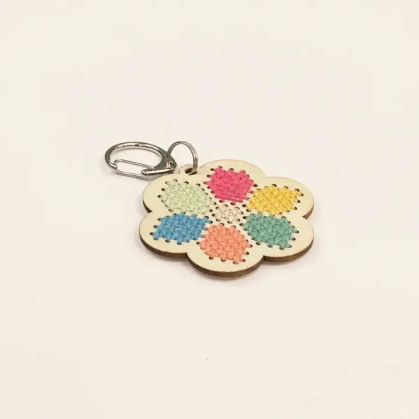 Ce kit de porte-clés « Fleur à broder au point de croix » permet aux enfants de créer facilement leur propre accessoire. Il contient une fleur en bois robuste à broder, un ensemble de fils de coton aux couleurs pastel et une aiguille à broder en métal résistante. Les enfants peuvent réaliser différents motifs détaillés sur la fleur, développant à la fois leur créativité et leur motricité fine. Une fois la broderie terminée, il suffit d’ajouter l’anneau porte-clés pour accrocher la création à un sac à dos, une ceinture ou tout autre support.